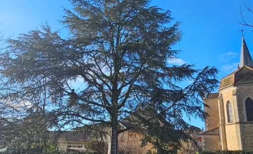 Au respect de L’arbre, entreprise d'élagage et abattage à Chatillon sur Chalaronne, a effectué la taille d’un Cèdre de l’Atlas à L'Abergement Clémenciat.