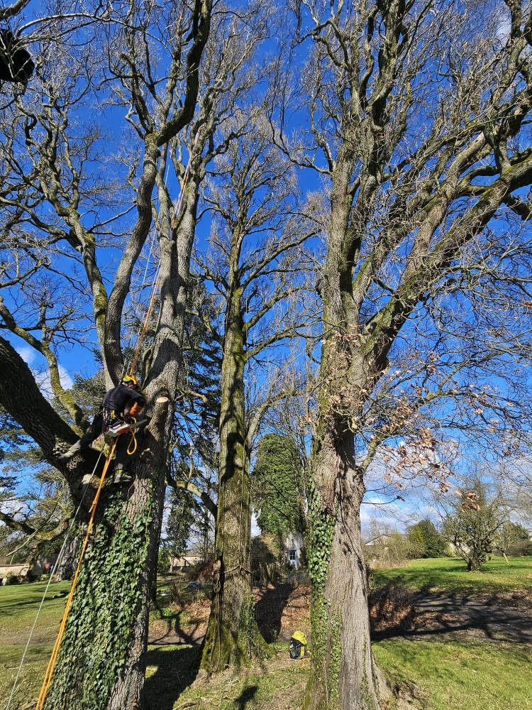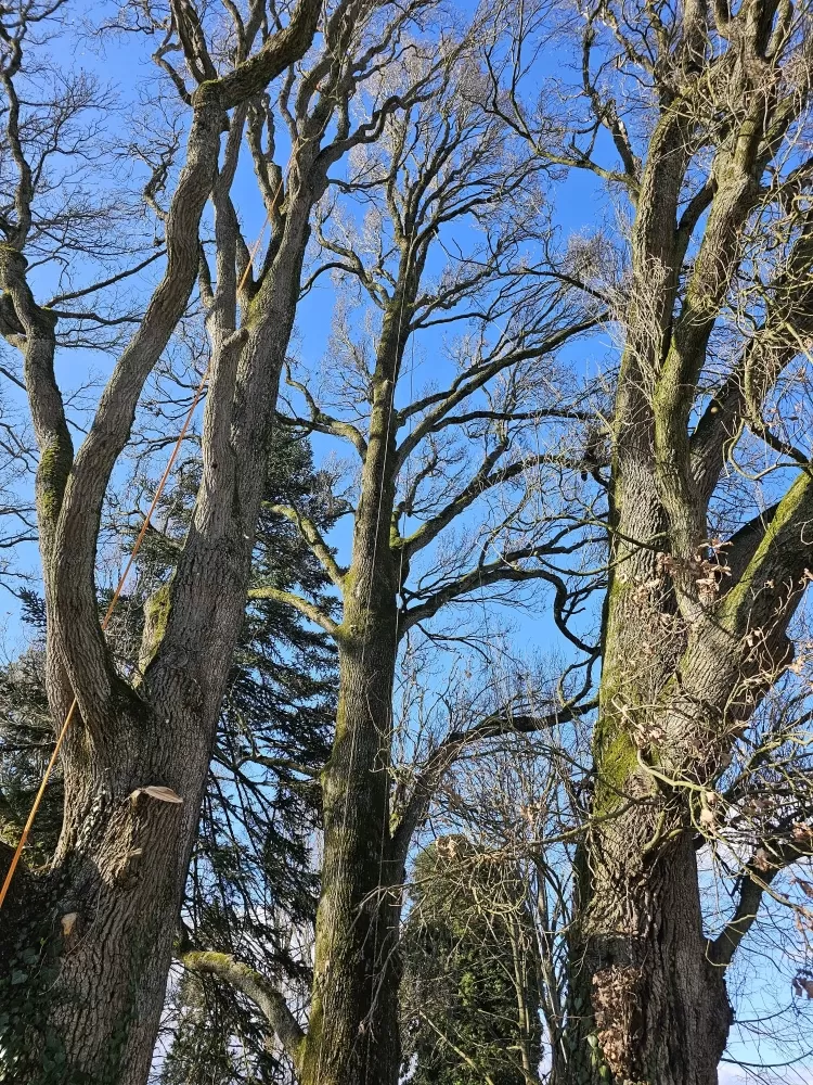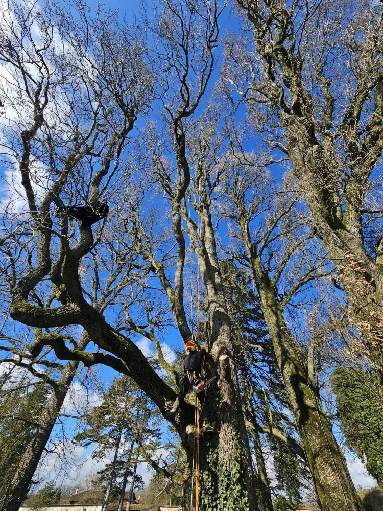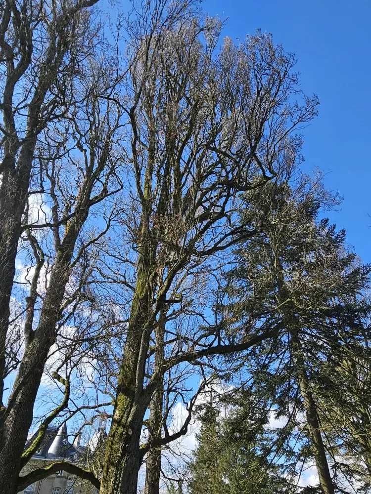 Au Respect de l'Arbre, Élagueur à Châtillon-sur-Chalaronne, est spécialisé dans l’entretien des arbres, notamment la taille et la coupe des branches pour des raisons esthétiques, de sécurité ou de santé de l’arbre. Nous avons ici réalisé l'élagage de 3 chênes tortueux de 30 m au château de Saint André le Bouchoux.