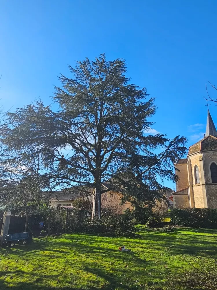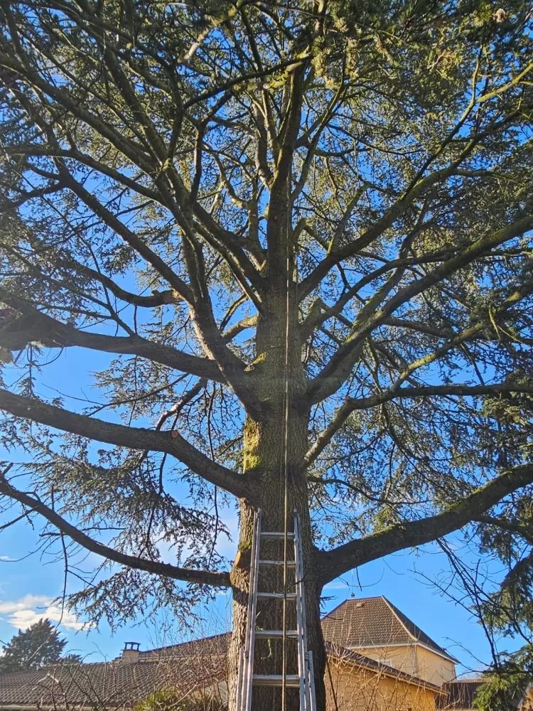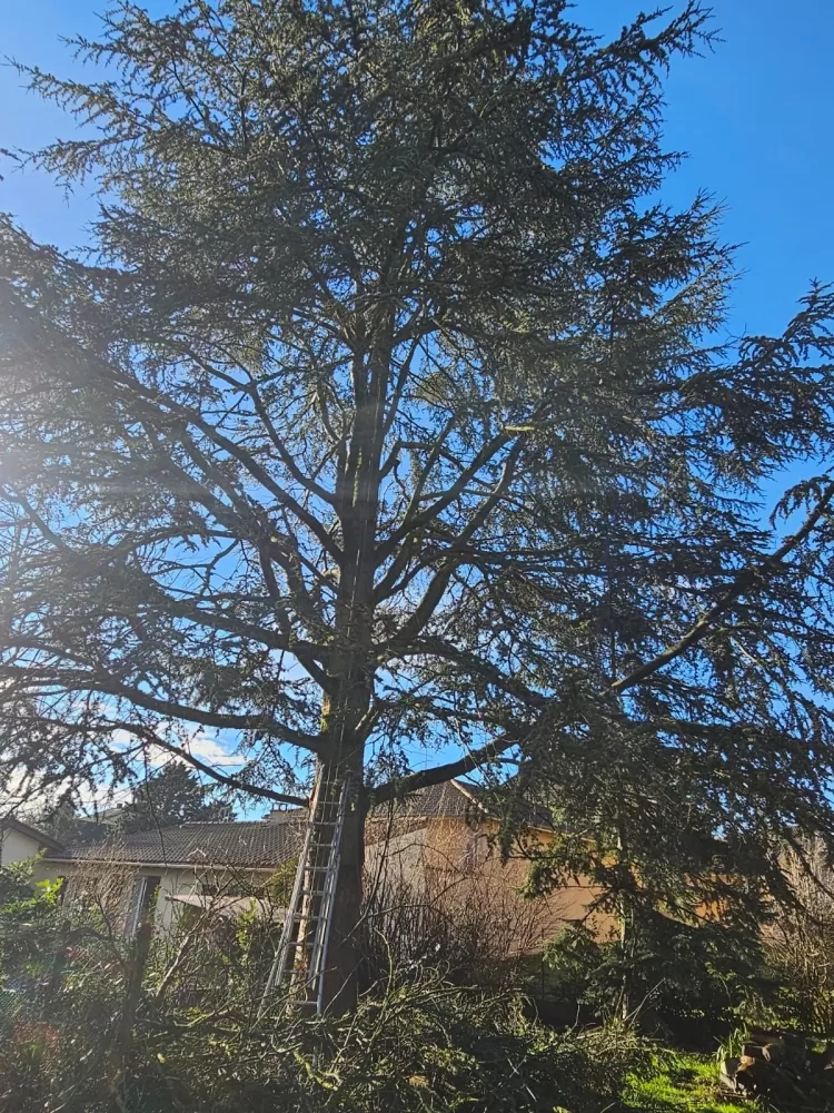 Au respect de L’arbre, entreprise d'élagage et abattage à Chatillon sur Chalaronne, a effectué la taille d’un Cèdre de l’Atlas à L'Abergement Clémenciat.
